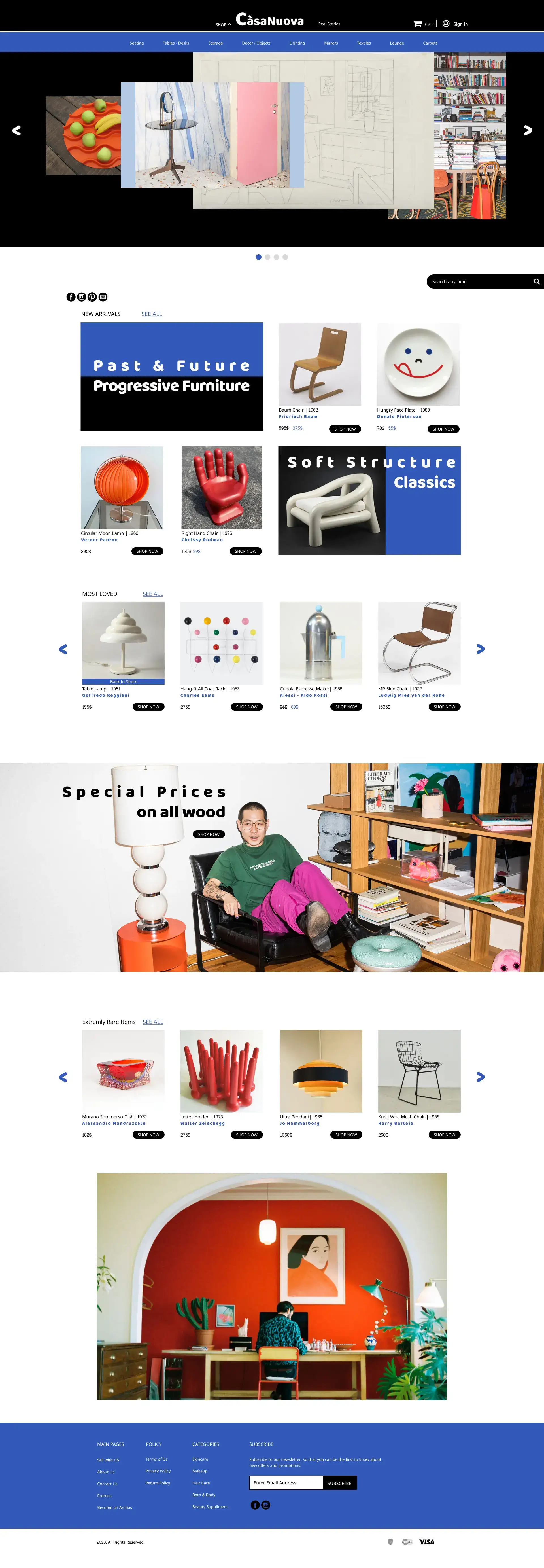 The design should wrap the featured products and set the attention on them - leading to a successful purchase, alongside providing the buyer with background information and rich, modern, lifestyle experience.