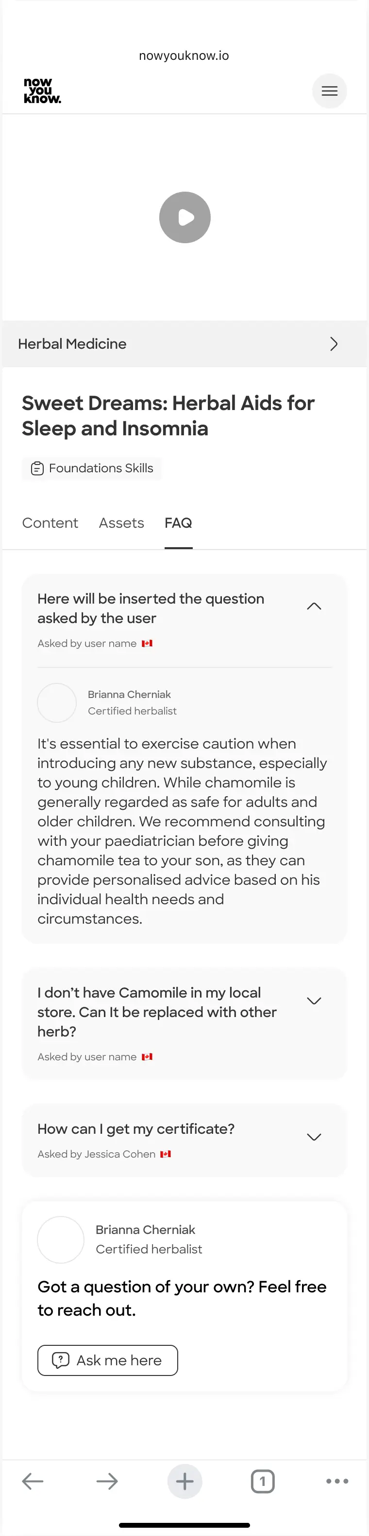 ● Ask a question button - include in the end of the content tab