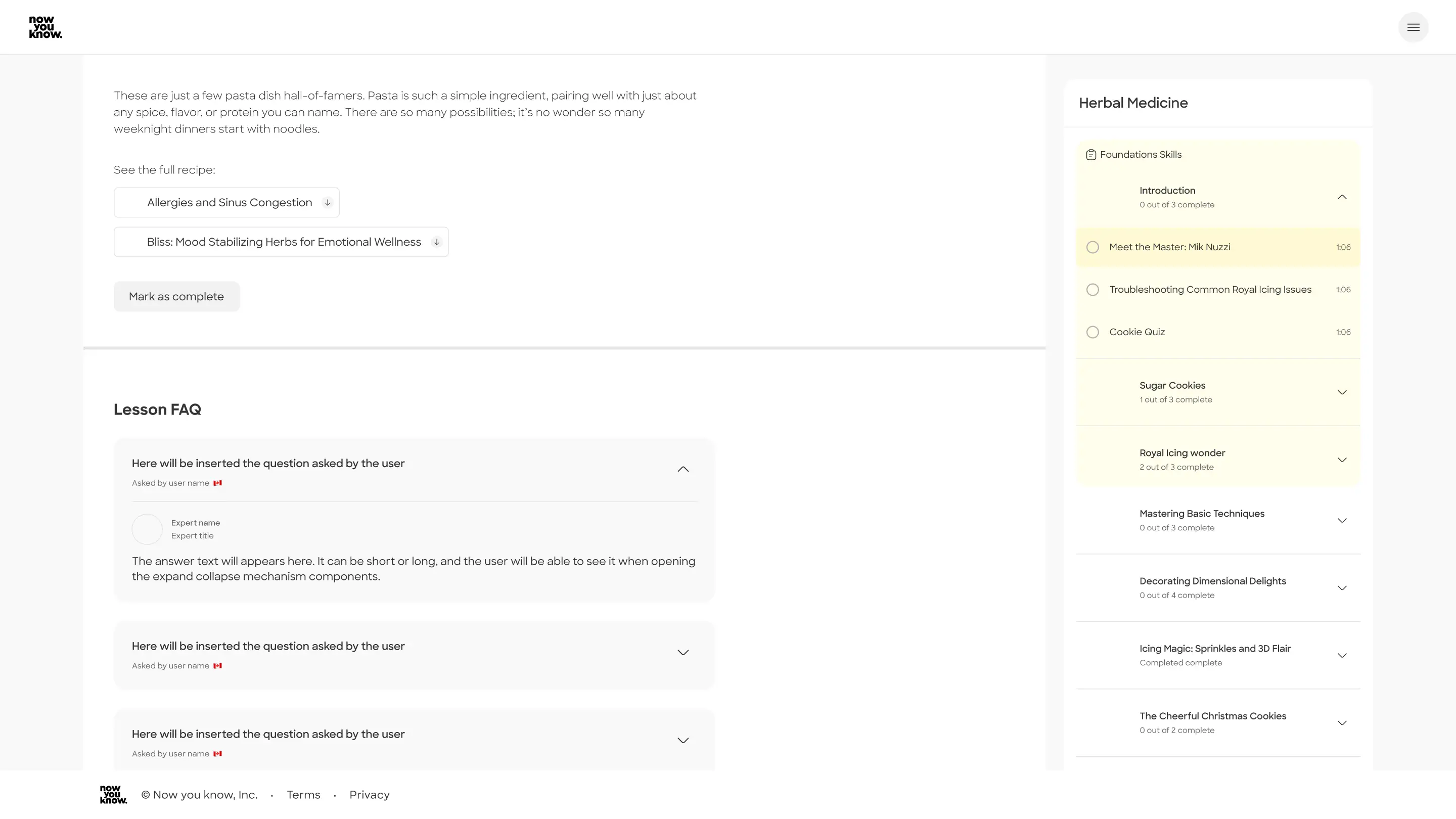 This allows the user an easy access to asking questions. I understood asking a question is just one of the main actions a user might want to do while viewing the lesson. Answers can still be viewed separately.